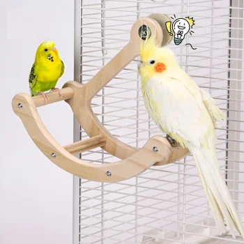 Wooden Parrot Exercise Wheel Perch – Bird Swing & Play Stand