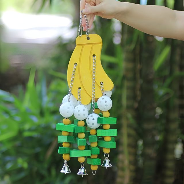 This Wooden Bird Toy Swing with Banana Bunches and Stairs is designed to be more than just a toy – it’s a comprehensive activity center for your parrot. Its unique combination of features – including climbing ropes, chewable wood, and fun swings – makes it a must-have for any bird owner. Not only does it provide entertainment, but it also promotes healthy behavior and offers mental stimulation. If you want your parrot to live a happy, active life, this toy is the perfect solution.