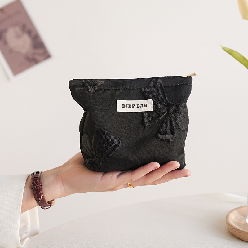 Black Bow Makeup Bag Compact Women’s Cosmetic Clutch with Zipper