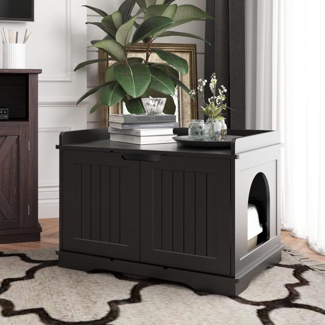 Whether you’re seeking a more stylish way to conceal your cat’s litter box or simply need a practical solution that also adds to your decor, this Black Cat Litter Box Enclosure Furniture is the answer. With its chic, modern design and thoughtful features, it’s a must-have for any cat owner who values both function and aesthetics. Enjoy a clean, organized space where your cat can have the privacy they deserve while you showcase your impeccable sense of style.