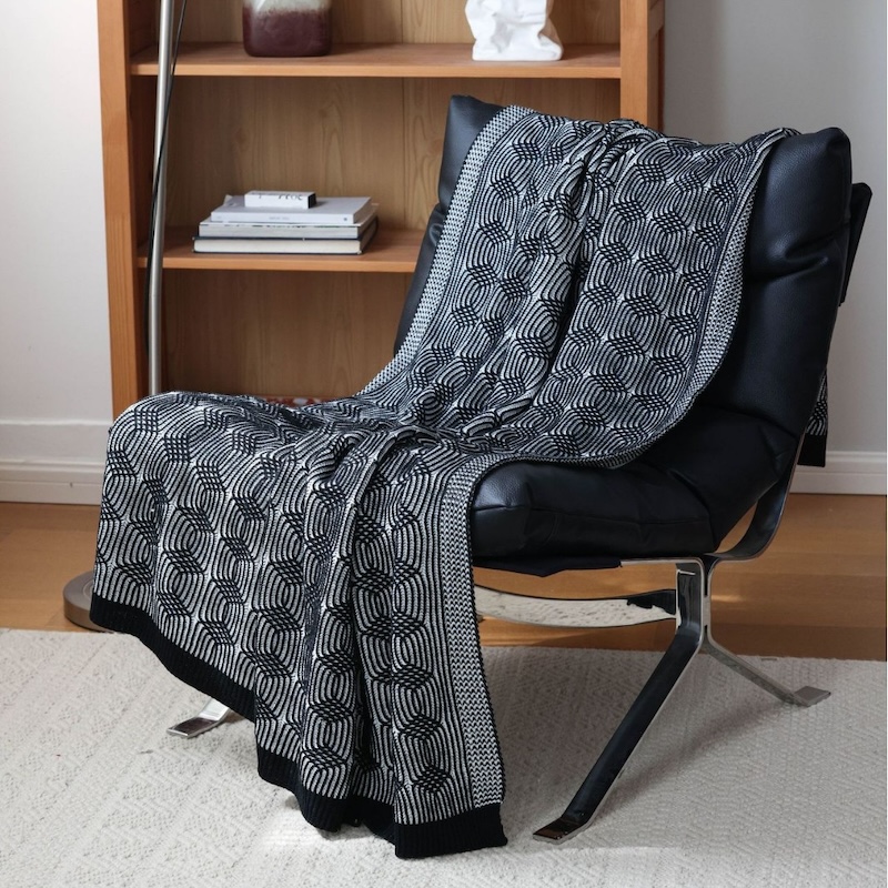 Transform your space with this Black Geometric Knitted Blanket today. Chic, versatile, and oh-so-cozy—this throw is exactly what your living room or bedroom has been missing. Add it to your home décor and experience the perfect blend of comfort and modern design.