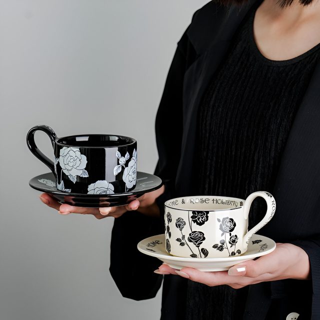 This Black Rose Ceramic Latte Mug Set is more than just a drinkware accessory—it’s a statement piece for your home. The beautiful black rose design brings an air of vintage charm that will complement any modern or traditional decor. Ideal for cozy mornings at home or casual coffee dates with friends, this set adds a touch of luxury to your daily routine. The accompanying saucer ensures a tidy, elegant experience every time you indulge in your favorite hot beverage.