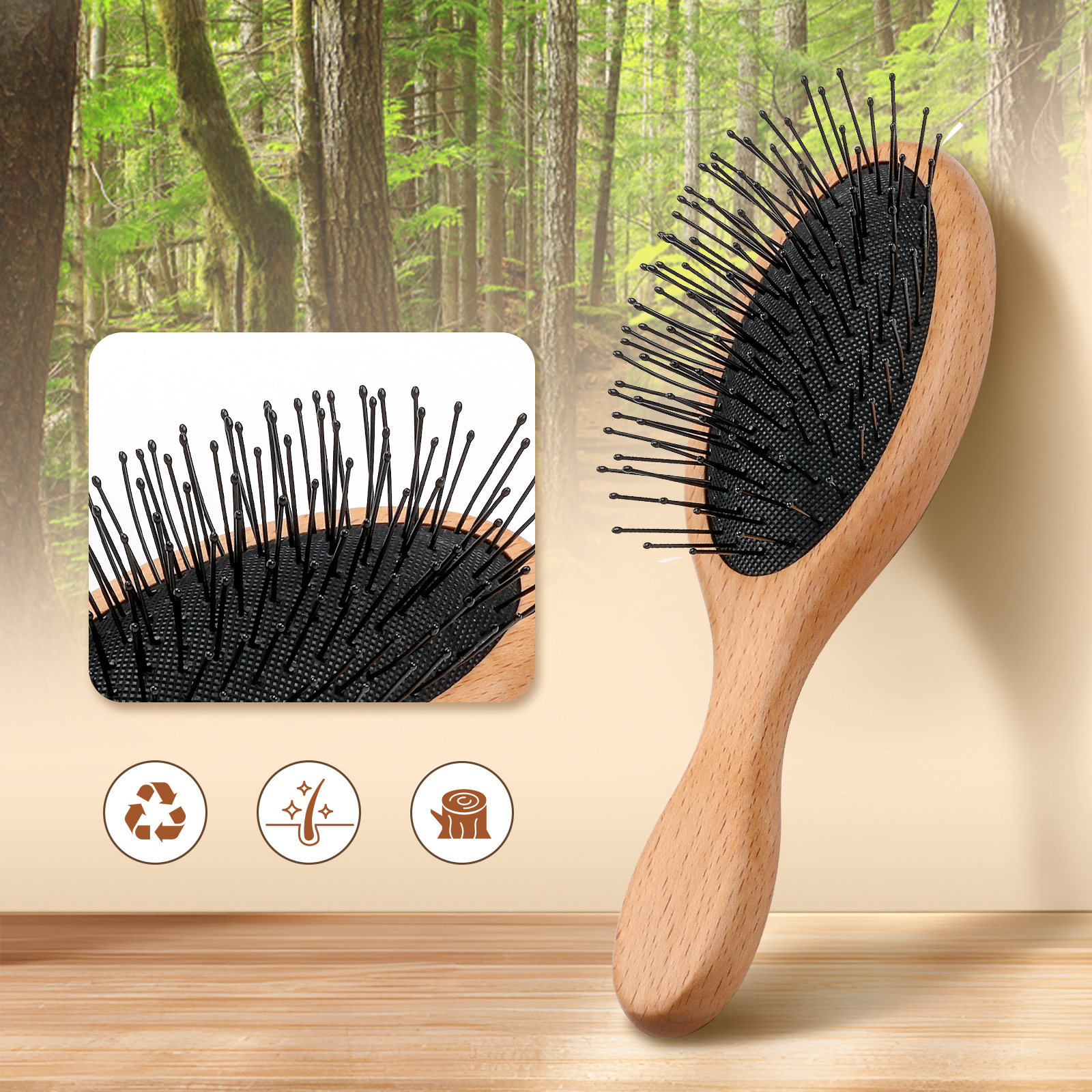 • Anti-static wooden bristles for smooth, frizz-free brushing.