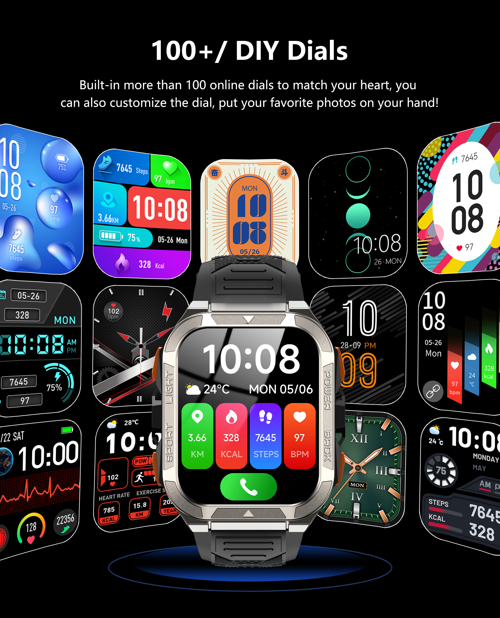 This smartwatch delivers all the essential features you rely on every day. With health monitoring sensors that track heart rate, blood oxygen, sleep, and stress, it helps you stay aware of your body wherever you go. Integrated Bluetooth 5.3 ensures fast, stable connectivity, allowing you to receive calls, answer them instantly, and get message reminders without reaching for your phone.