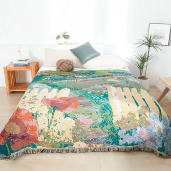 Floral Cotton Gauze Towel Blanket for Bed, Sofa & Travel – 79×91 in