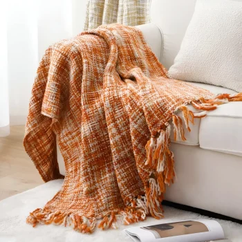 Orange Knit Throw Blanket with Tassels – Boho Decorative Sofa & Bedspread