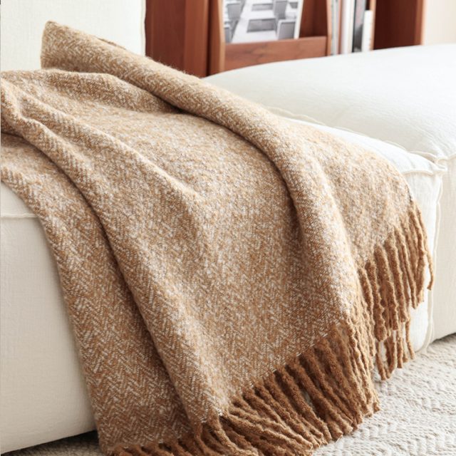 This blanket isn’t just for warmth – it’s a style statement. Its soft texture and neutral tones make it suitable for any season, whether you’re curling up on a chilly autumn evening or adding a touch of elegance to your spring decor. The geometric pattern creates visual interest without overwhelming your space, and the tassels give it that subtle designer look that makes a room feel complete.