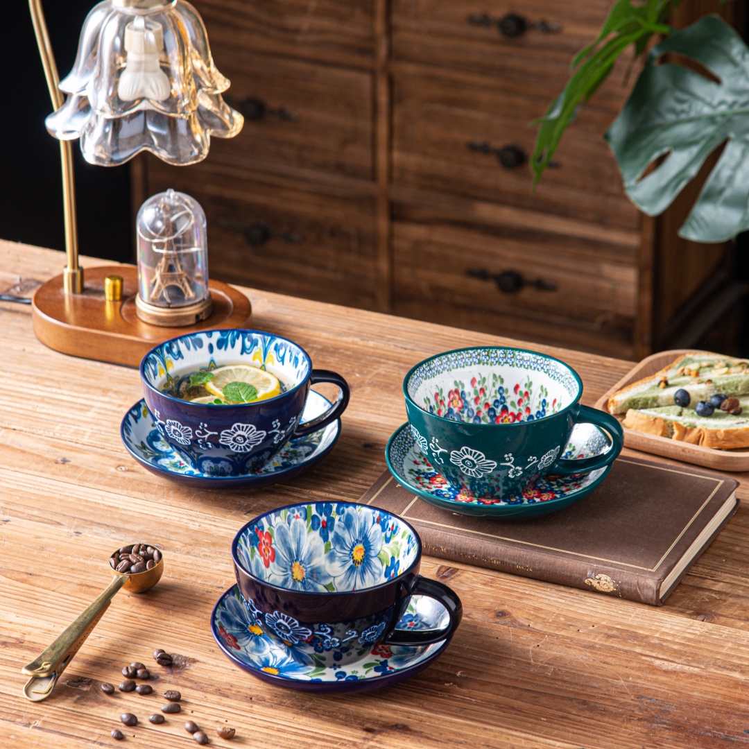 What truly sets this product apart is the hand-painted bohemian design. No two mugs look exactly the same, giving you a one-of-a-kind feel that mass-produced drinkware simply cannot match. The included dessert plate adds both function and charm, making it easy to serve cookies, pastries, or snacks alongside your favorite drink.