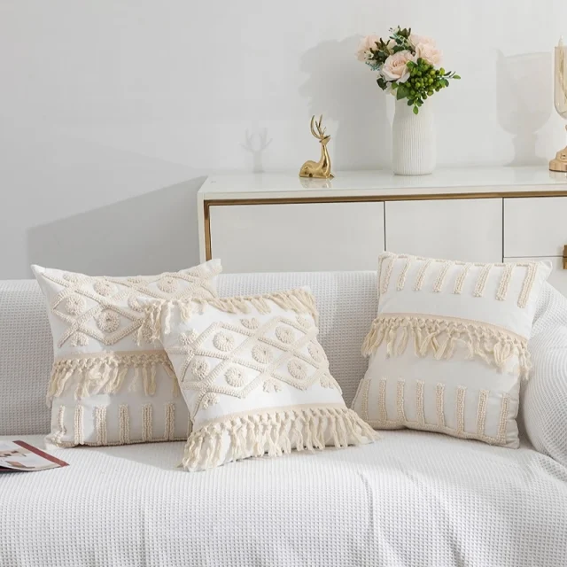 What makes this cushion cover special is its balance of simplicity and texture. The neutral color keeps your space feeling light and airy, while the tufted embroidery and fringe bring warmth and character. It’s ideal for refreshing your décor seasonally or adding a boho accent without overwhelming your space. Use it year-round in living rooms, bedrooms, cafés, hotels, or vehicles for an effortlessly styled look.