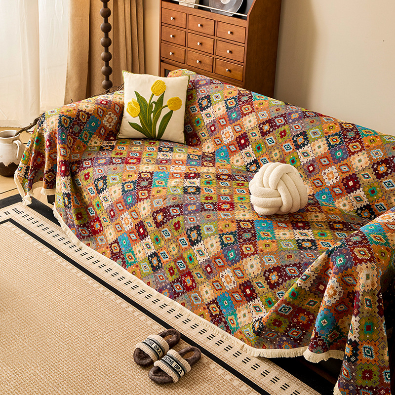 Boho Color Plaid Jacquard Sofa Cover – Elegant All-Season Blanket