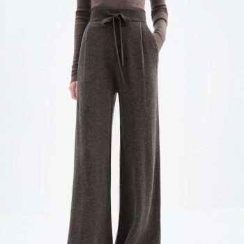 High Waist Winter Knit Wide Leg Pants with Drawstring – Soft Stretch Comfort