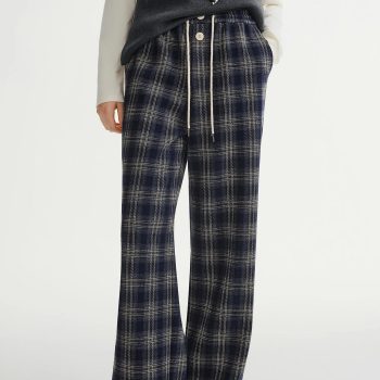 Women’s plaid drawstring loose fit trousers for fall & winter comfort