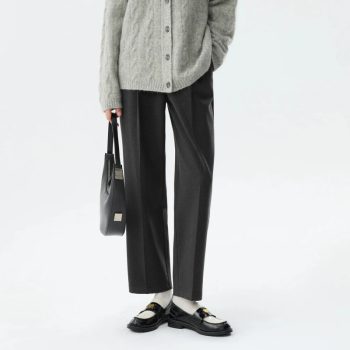 Straight High Waist Wool-Blend Slim Fit Winter Office Pants for Women
