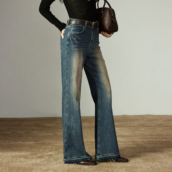 Vintage Mud-Yellow Fleece-Lined Flared Jeans for Women