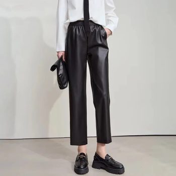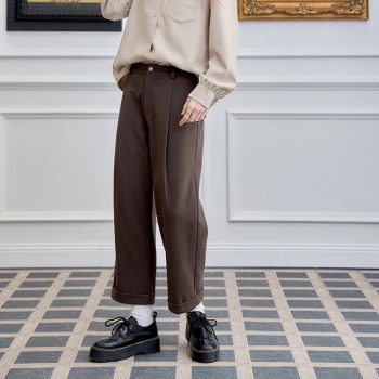 Winter Women’s Korean-Style Wide-Leg Cotton Pants with Colorblock Waist