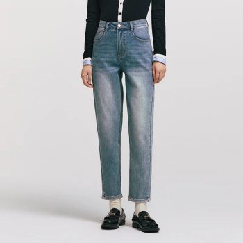 Retro Ankle-Length Slim Fit Denim Jeans for Women