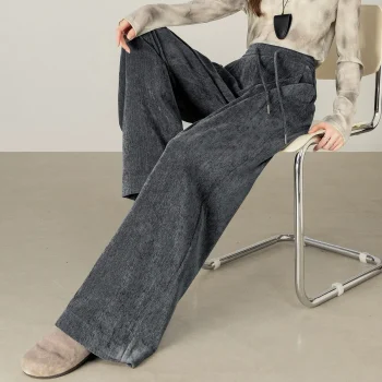 Women’s Thermal Corduroy Wide-Leg Pants with Pockets