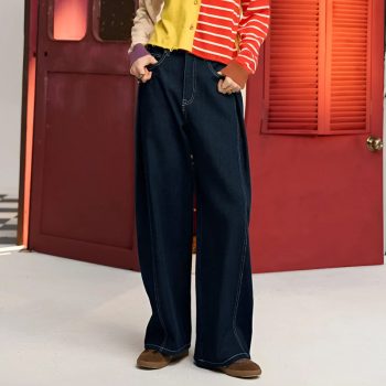 Washed Blue Deconstructed Wide-Leg High Waist Jeans for Women