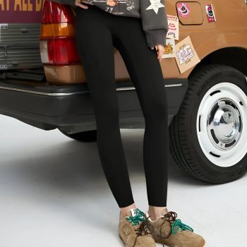 High Waisted Black Slim Fit Knit Pants for Women – Winter Casual Style