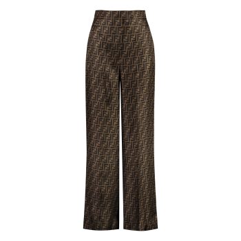 Fendi Brown FF Monogram Silk Twill Wide Leg Pants