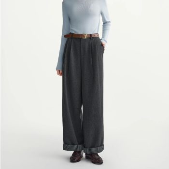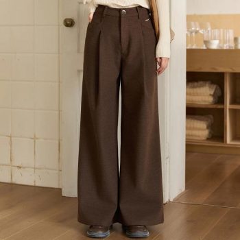Brown High-Waist Wide-Leg Pants for Women Autumn Winter