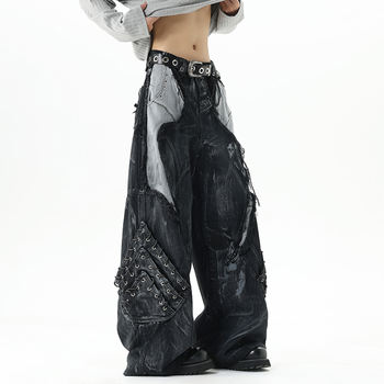 Vintage Contrast Patchwork Cargo Pants – Loose Fit Wide Leg