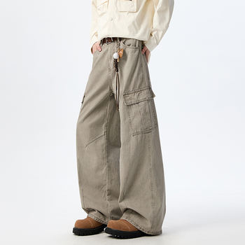 Men’s Wide Leg Cargo Pants with Multi-Pocket Design