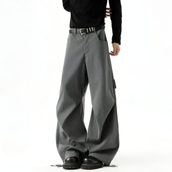 Men’s Pleated Striped Wide-Leg Suit Pants – Casual Contrast Design