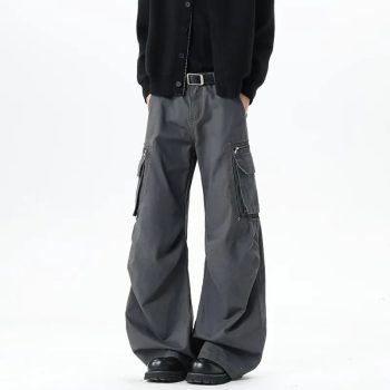 Men’s Casual Cargo Pants Korean Style Loose Straight Leg Trousers