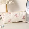 Stay organized in style with this cute bowknot pencil case, perfect for school, office, or creative hobbies. Made from soft fabric with a chic lined pattern, this pencil pouch combines a playful look with practical storage. Its compact yet roomy size of about 6.7 x 2.8 x 2.4 inches makes it easy to carry in your backpack, tote, or handbag while still holding all your essential stationery items.
