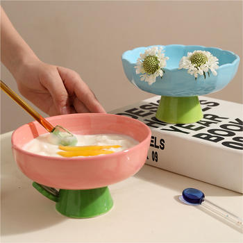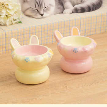 High Foot Anti-Tip Ceramic Pet Bowl for Cats & Small Dogs