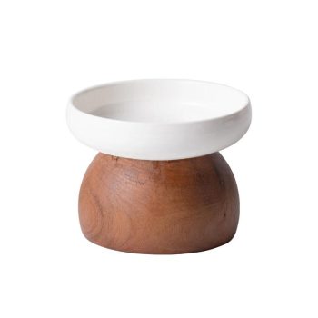 Elevated Ceramic Pet Bowl with Solid Wood Stand