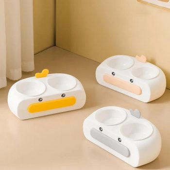 2-in-1 Ceramic Cat Bowl with Water & Food Design