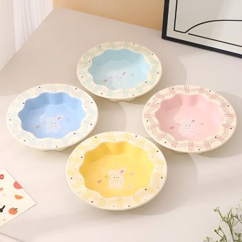 Non-Slip Ceramic Cat Food & Water Bowl with Cute Cartoon Print