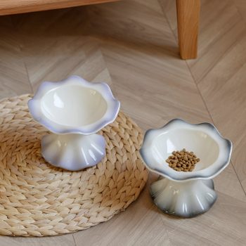 Elevated Ceramic Flower Pet Bowl for Cats & Small Dogs