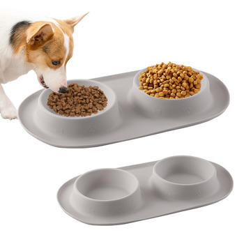 Non-slip Silicone Pet Dog Bowl with Double Feeder – Durable, Easy to Clean, Slow Feeder