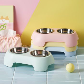 Cute Pet Double Bowl with Large Capacity – Vibrant Dopamine Color Design