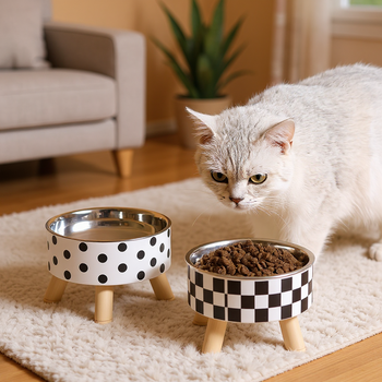 Elevated Tilted Ceramic Cat Bowl with Acrylic Anti-Slip Stand