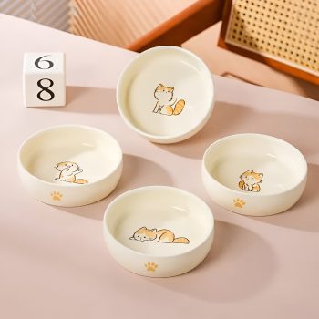 Cute Ceramic Cat & Small Pet Feeding Bowl – Rounded Non-Slip Design