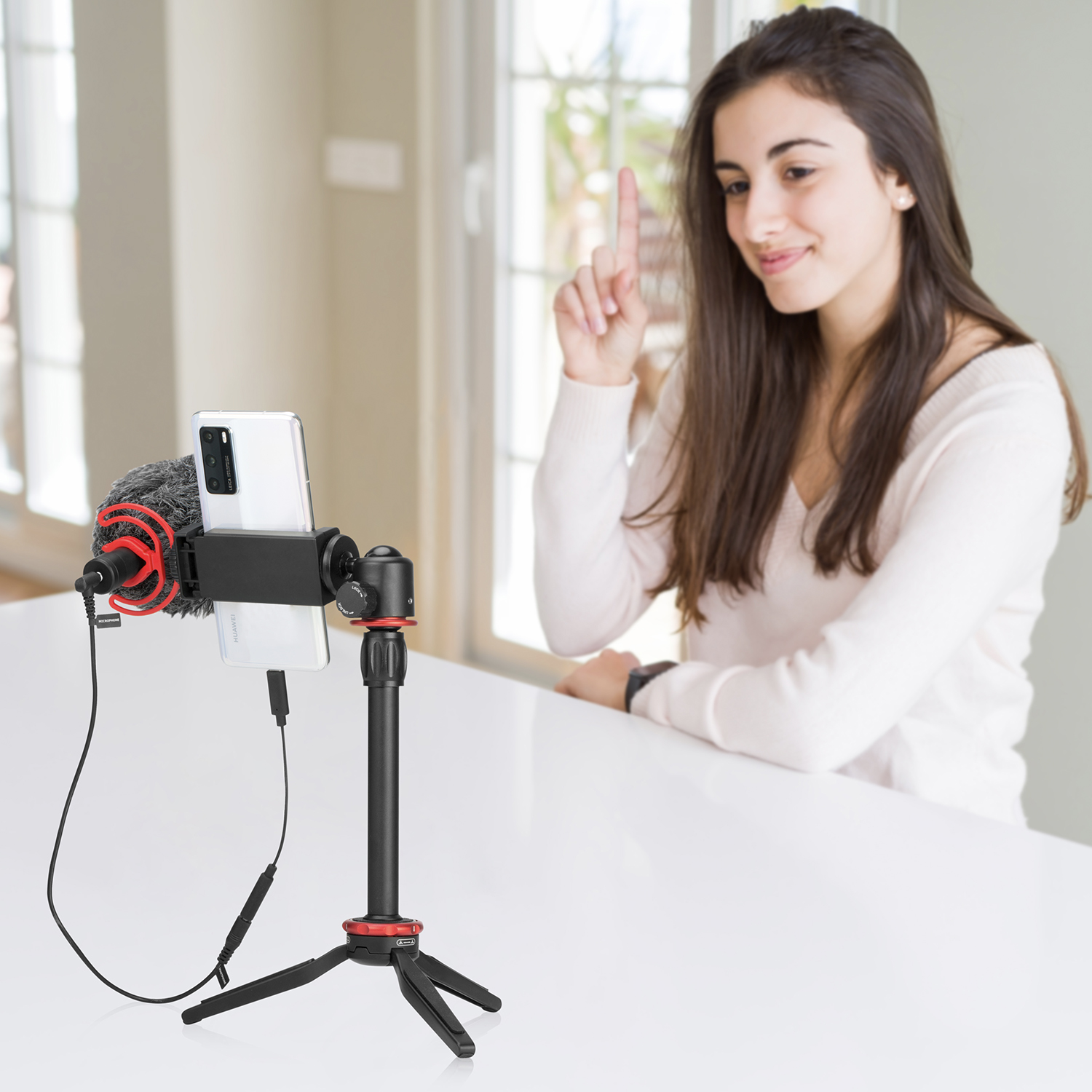 • Flexible Extension Tube: Acts as a boom arm, letting you position the microphone and light perfectly above or to the side of your shot.