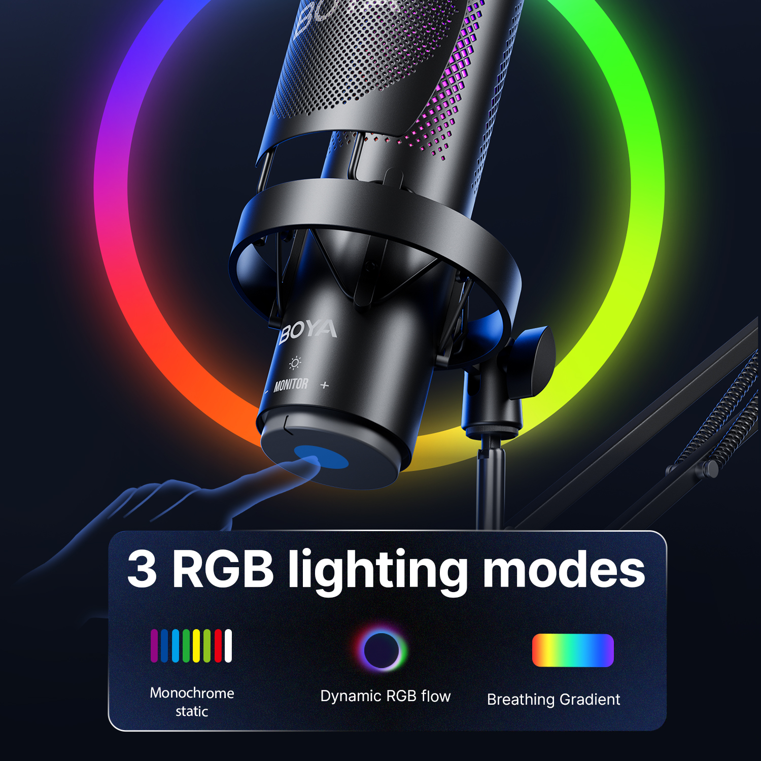 BOYA K9 USB Condenser Microphone with RGB Control/Headphone jack/Mute,MIC for PC PS4 PS5 Mac Gaming AmpliGame Youtueb Recording