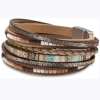 Boho Leopard Leather Wrap Bracelet – Multi-Layer Crystal Cuff Jewelry