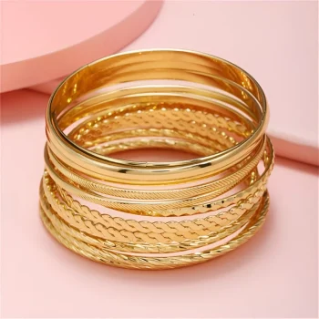 12pcs Gold Cuban Chain Bracelet Set for Women – Punk Boho Layered Bangles
