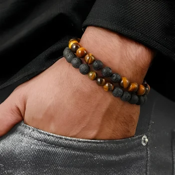 Men’s Tiger Eye & Black Onyx Braided Bracelet – 8mm Lava Stone Jewelry