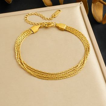 Gold Tone Multi-Layer Stainless Steel Chain Bracelet for Women