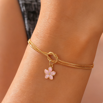 Elegant Enamel Flower Love Knot Bracelet for Women – Gold & Steel Adjustable Charm