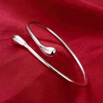 925 Sterling Silver Water Drop Cuff Bracelet for Women – Elegant Adjustable Bangle