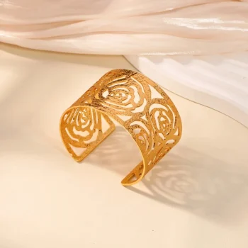 Minimalist Vintage Flower Hollow Bangle Bracelet for Women – Elegant Party Jewelry