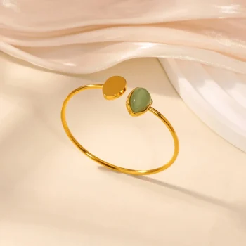 Gold-Plated Stainless Steel Imitation Jade Bangle for Women – Geometric Opening Bracelet