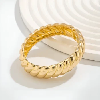 Hip-Hop Retro Metal Bangle – Thick Thread Texture Gold & Silver Bracelet